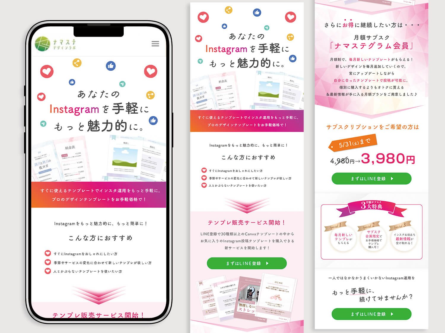 インスタグラムテンプレート販売開始のお知らせLPを制作いたしました。